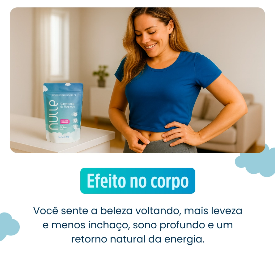 Ele combina magnésio em diferentes formas para garantir alta absorção, atuando diretamente na regulação do estresse e na melhora da qualidade do sono. Com o tempo, você sente menos inchaço, mais energia, clareza mental e pele mais bonita.